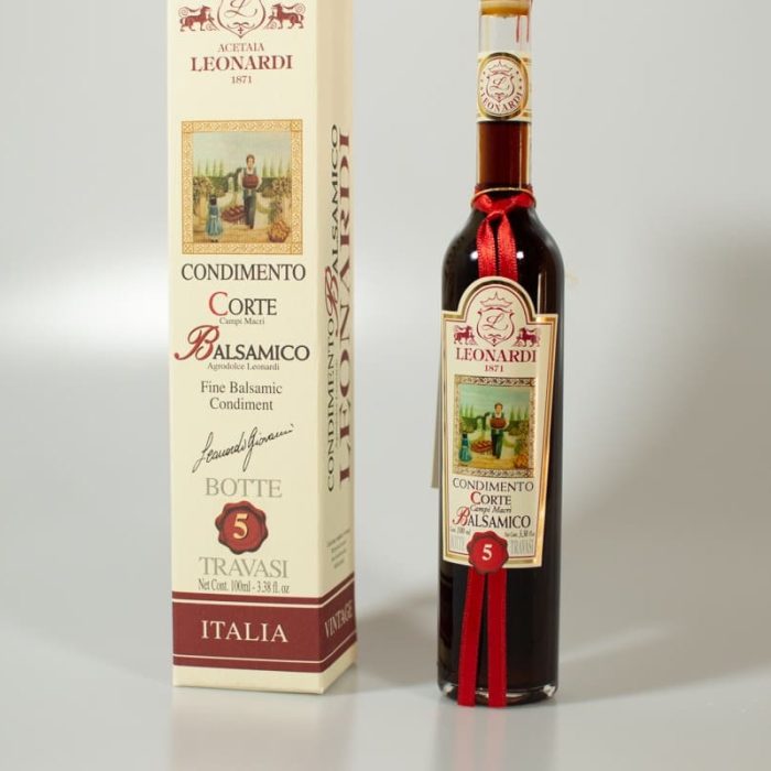 Prodotto dall’Acetaia Leonardi, produttori di aceto sulle colline modenesi dal 1871.